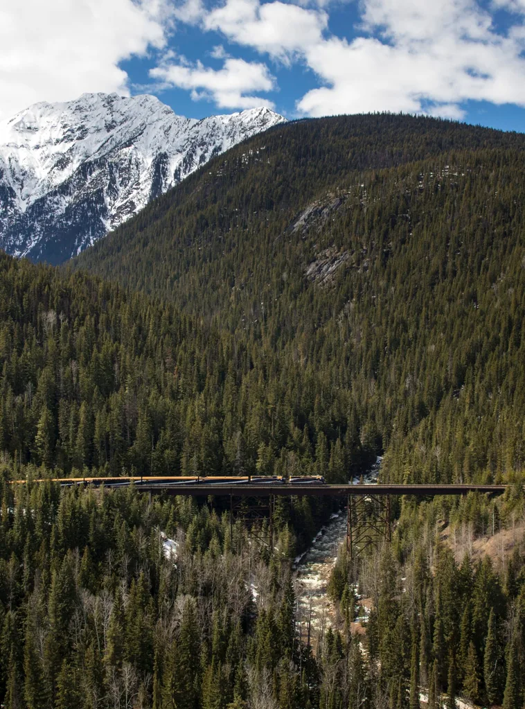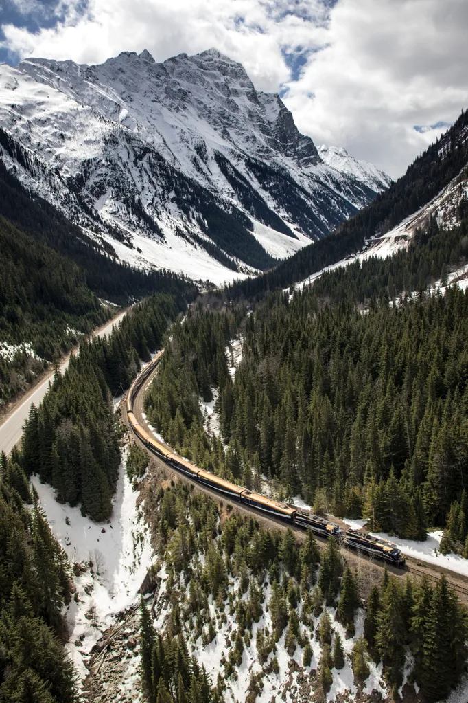 This is the beginning of the iconic ‘First Passage to the West’ route; a 900-kilometre sojourn that takes us from the coastal city of Vancouver in British Columbia to Alberta’s bucket listtopping resort town of Banff. It’s the first of four rail routes crisscrossing Western Canada and the Colorado Rockies, following the same historic trails that early settlers took on foot more than a century ago (albeit ours is a more lavish experience).